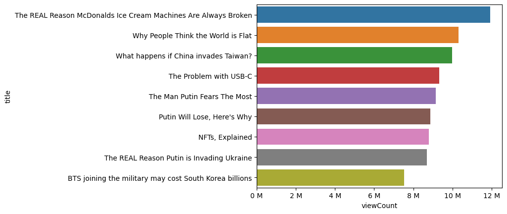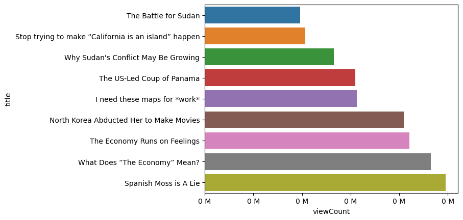 Based on our analysis, we discovered that Johnny Harris' channel has a significant subscriber base and a considerable number of views across his videos. The best performing videos, in terms of view count, cover a wide range of topics and engage the audience effectively. On the other hand, the worst performing videos may require further optimization to enhance viewership.