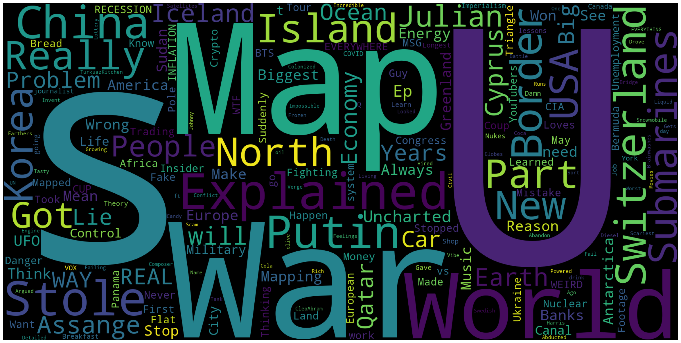 We also observed a positive correlation between views and engagement metrics such as likes and comments, indicating a high level of viewer interaction. The duration of the videos varies, with a majority falling within a specific range, suggesting an optimal duration for viewer engagement. The word cloud analysis of video titles revealed prominent themes and keywords associated with Johnny Harris' content.